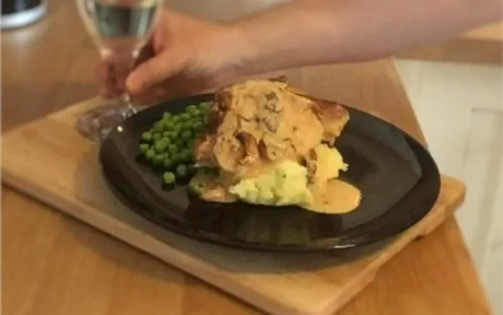 Traditionally I have made this meale with a white onion sauce which is similar to a white wine sauce but you need to soften some onions in some butter then make the sauce on top of that.